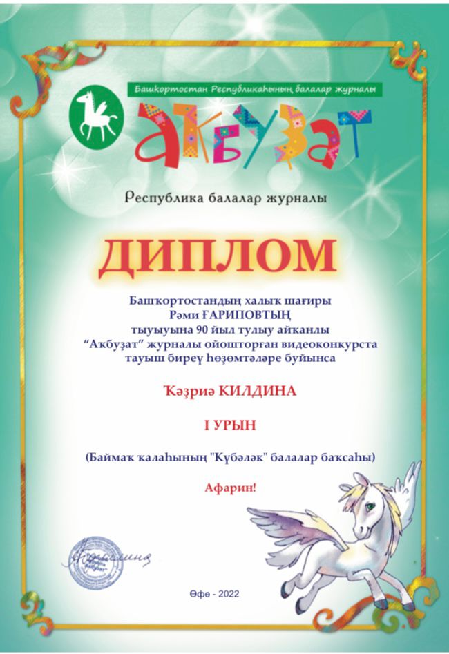 "l Төбәк-ара "Башҡорт телендә белем биреүсе иң яҡшы мәктәпкәсә белем биреү ойошмаһы" конкурсы / I Межрегиональный конкурс "Лучшая дошкольная образовательная организация с обучением башкирскому языку"