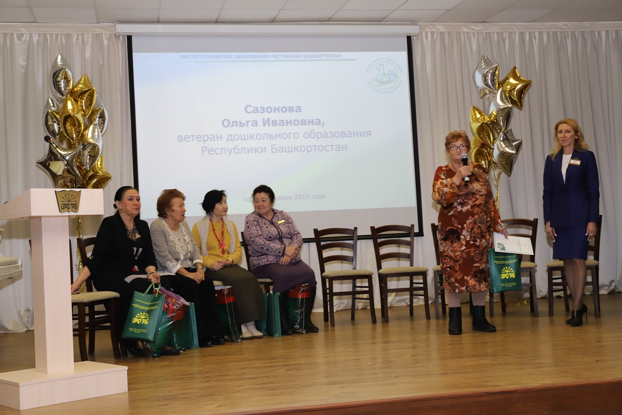 В итоге пленарной части на сцене чествовали ветеранов системы дошкольного образования Республики Башкортостан.