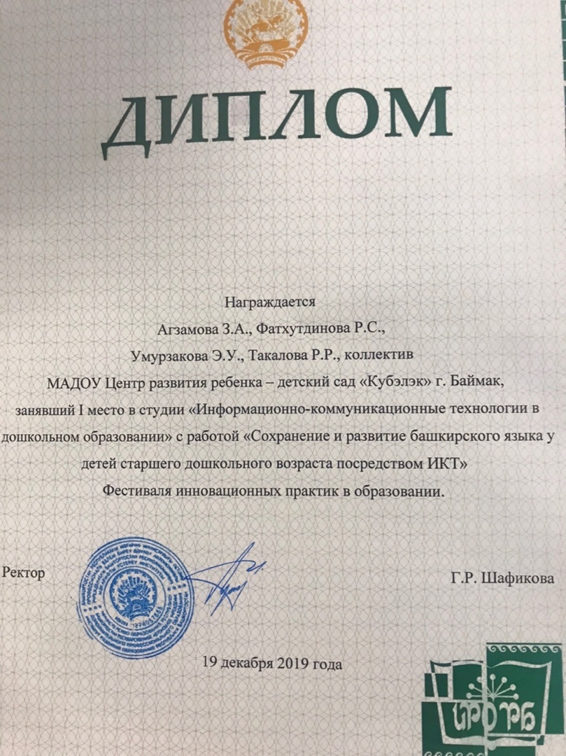 По итогам работы студий были определены победители и лауреаты, чествование которых состоялось в рамках финальной студии. Наши коллеги заняли 1 место в направлении "Информационно-коммуникационные технологии в дошкольном образовании" с работой "Сохранение и развитие башкирского языка у детей старшего дошкольного возраста посредством ИКТ". Поздравляем с победой и желаем новых достижений!