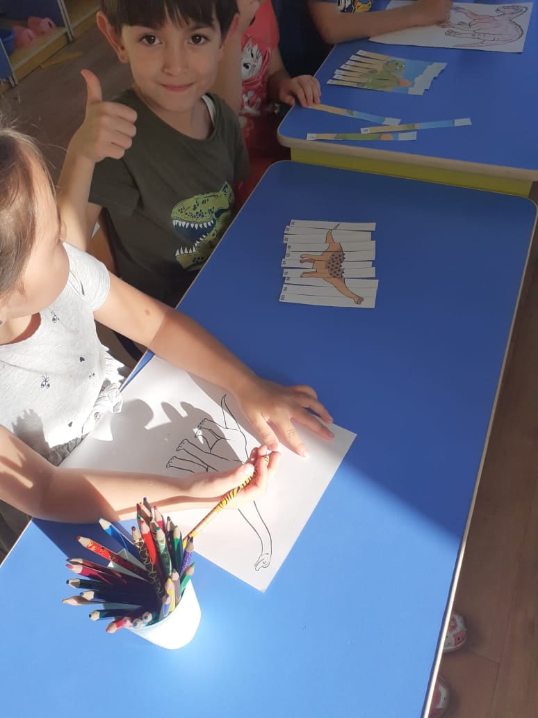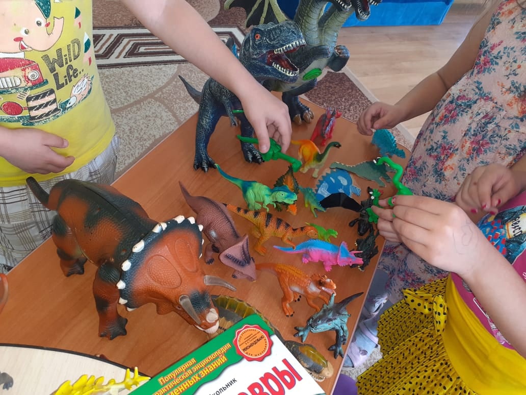 И тут от ребят посыпались много вопросов, а кто-то рассказывал про свои знания о динозаврах, начали говорить о том, что у них есть дома целая коллекция динозавров.