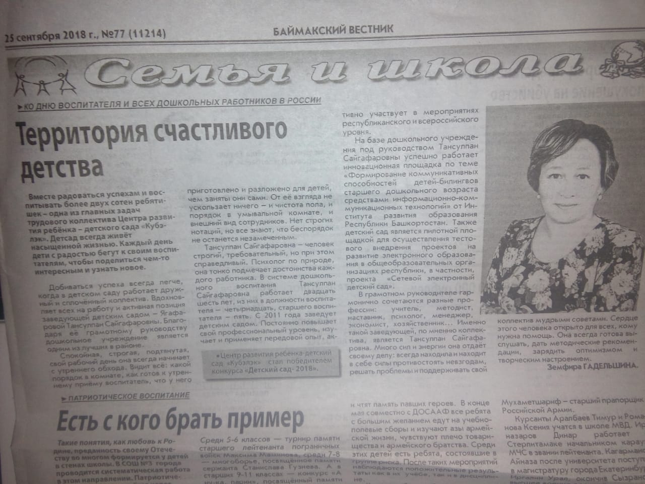 В грамотном руководителе гармонично сочетаются разные профессии: учитель, методист, наставник, психолог, менеджер, экономист, хозяйственник… Именно такой заведующей, по мнению коллектива, является Тансулпан Сайгафаровна. Много сил и энергии она отдаёт своему делу: всегда находила и находит в себе силы противостоять невзгодам, решать проблемы и поддерживать свой коллектив мудрыми советами. Сердце этого человека открыто для всех, кому нужна помощь. Она всегда готова выслушать, дать методические рекомендации, зарядить оптимизмом и творческим настроением.