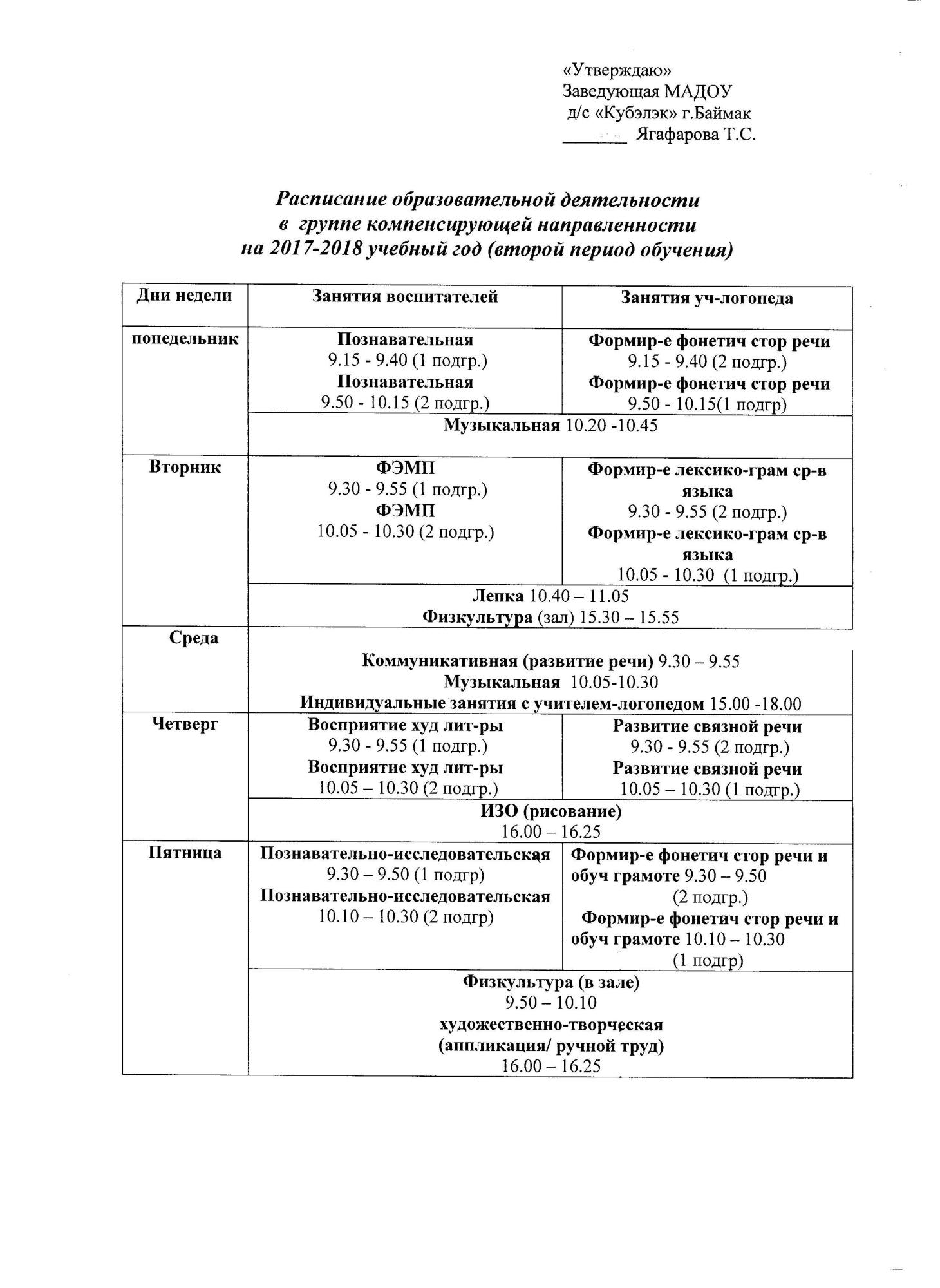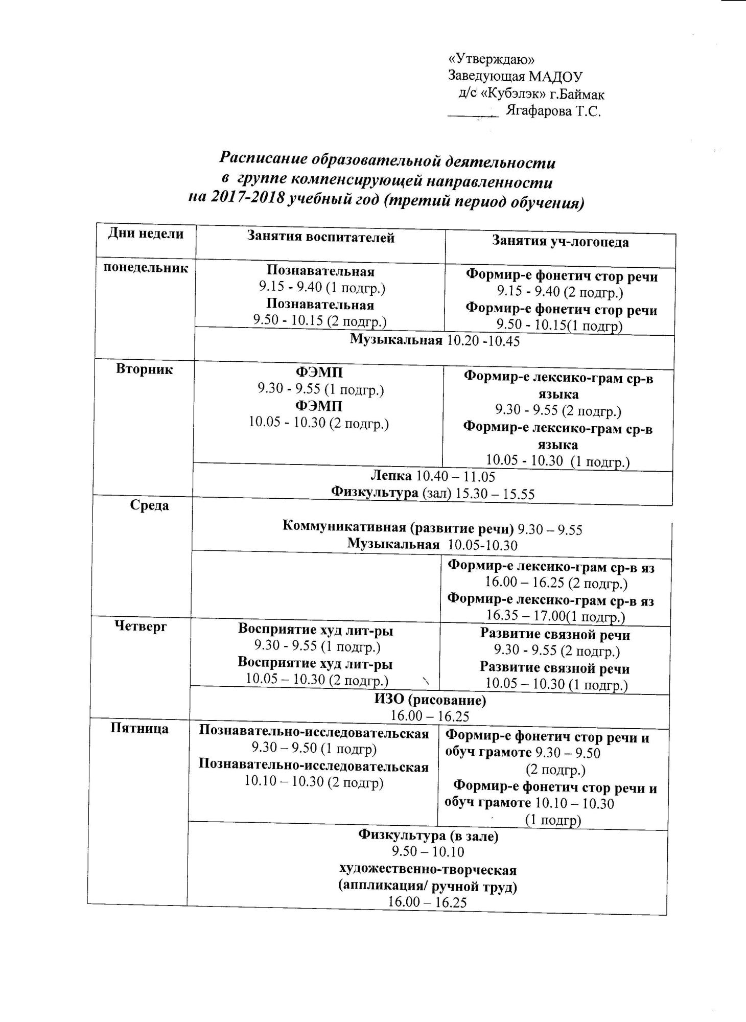 Расписание образовательной деятельности