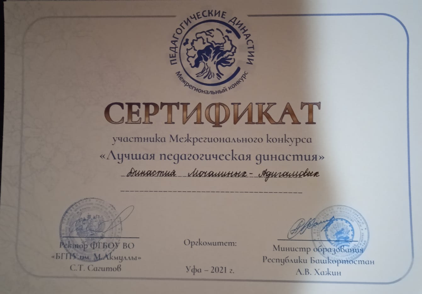 Учителя - логопеды детского сада "Кубэлэк" Мочалина Зиля Марсовна и Яндавлетова Сумбуль Ишбулдовна 7 декабря 2021 г. в городе Уфа представили свою педагогическую династию в межрегиональном конкурсе "Лучшая педагогическая династия». Конкурс объединяет династии педагогических работников, представители которых работают в настоящее время или работали ранее в образовательных учреждениях разных регионов России. Конкурс проводится с 2012 года. Его главная цель – повысить престиж педагогической профессии.