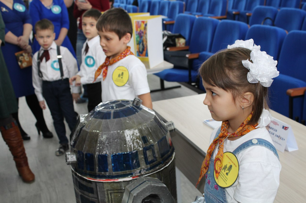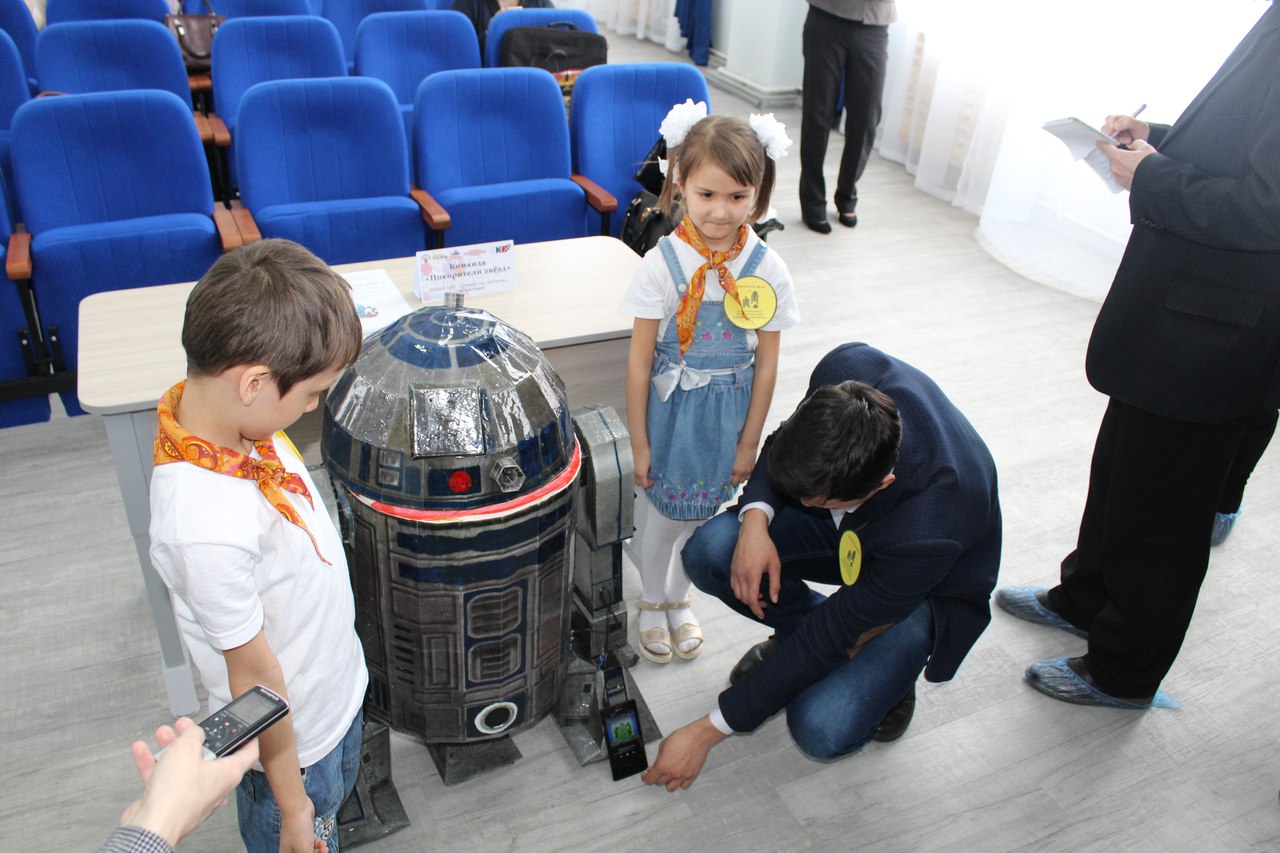 Команда МАДОУ ЦРР-детского сада "Кубэлэк" "Покорители звезд" под руководством воспитателя высшей категории Рахматуллиной Венеры Юлдыбаевны представили творческий проект по теме: «Робо-помощники в семье» «Робот-помощник R2 D2», где дети собирали робота - машину –пылесоса с радио и музыкой из подручных материалов, который облегчит труд маме. Итак, появился Робот –помощник R2D2. Наша команда победила в номинации "Оригинальный подход и оригинальное решение".