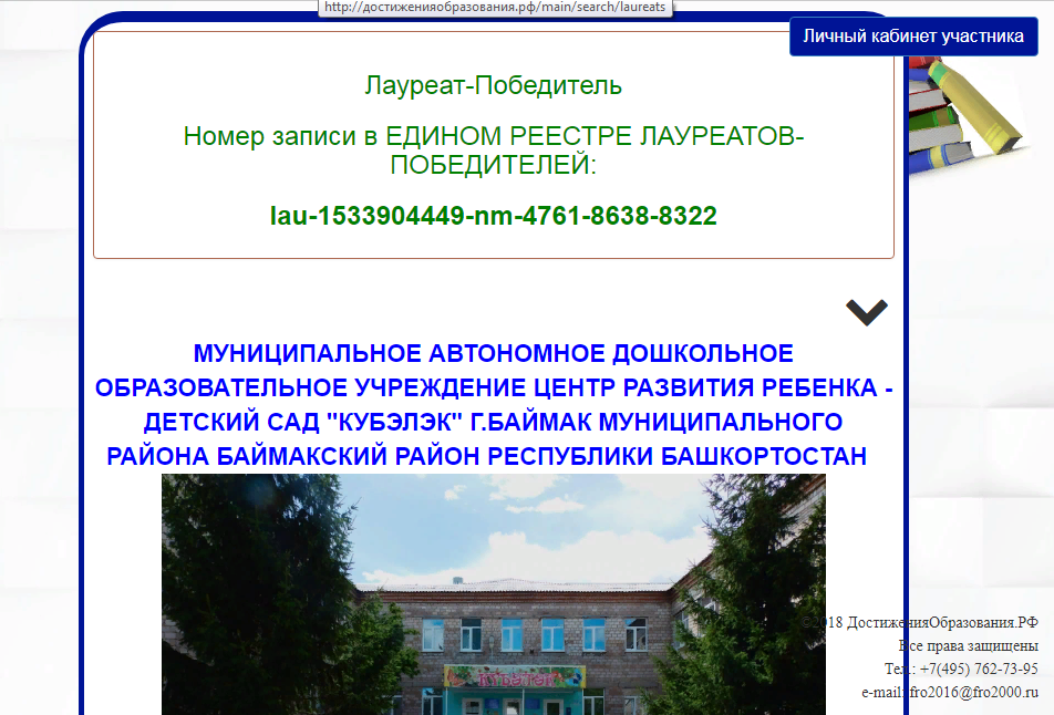 Подведены итоги мероприятия «Всероссийский смотр-конкурс образовательных организаций "ДОСТИЖЕНИЯ ОБРАЗОВАНИЯ" на основе многокомпонентного анализа». В мероприятии приняли участие 34186 участников. Конкурс проходил с 10 августа по 30 ноября 2018 г.